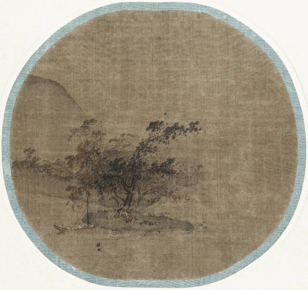 夏珪《山水图》以“边角取景”的构图法则,在绢本水墨的方寸间构建出南宋画院的审美革命。画中不见传统山水“三远法”的全景铺陈,仅以左下方数株老松、半坡山石与一叶扁舟占据画面核心,右侧大面积留白处,仅以淡墨轻染云气,似有若无的虚空处理,恰如董其昌所言“若灭若没,寓二米墨戏于笔端”,将米芾父子的云山墨戏融入大斧劈皴的刚劲线条中。